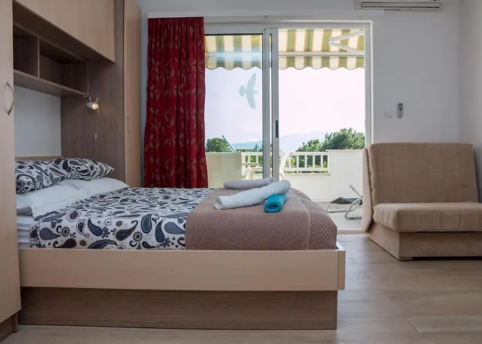Il y a aussi une bouilloire électrique et un réfrigérateur dans une cuisine complète à votre convenance. Il est situé à 135 km de l'aéroport Aeroport de Split. Les hôtes peuvent se détendre sur un patio.